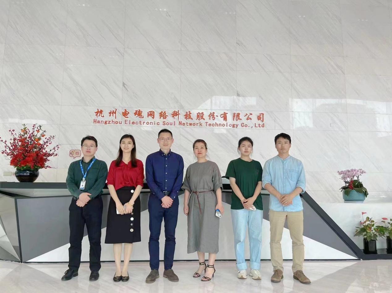 5月18日下午,3044am永利集团3044noc党总支负责人、学工负责人一行3人赴杭州电魂网络科技有限公司走访调研,中竞(浙江)教育科技有限公司董事兼总经理沈敏、商务经理刘发骏、教研总监胡亚雷参加调研。